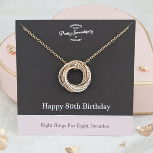80th Birthday Necklace – 8 Rings for 8 Decades – Silver and Gold