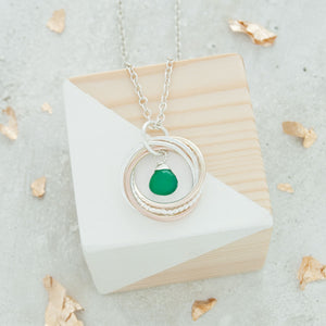 50th Birthday Birthstone Necklace – 5 Rings for 5 Decades – 9ct Gold and Silver