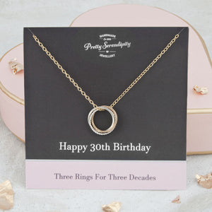 Mini 30th Birthday Necklace – 3 Rings for 3 Decades – Silver and Gold