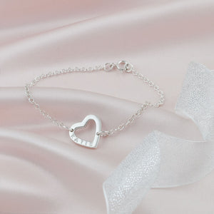 This cute sterling silver heart bracelet can be personalised with any name up to 5 characters in length. A timeless and popular choice for any upcoming anniversary or birthday celebration, this high quality charm has a wonderfully solid and tactile feel, thanks in part to its soft rounded edges and 2mm thickness.
